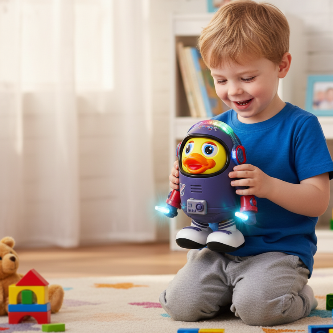 That’s where the Dancing Astronaut Duck comes in — a lively, music-filled companion that lights up any room and gets children moving with joy. With flashing lights, upbeat tunes, and adorable dance moves, this little duck turns playtime into an adventure through space and rhythm.